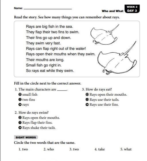 - Read the passage and answer questions: / Pagina de lectura
