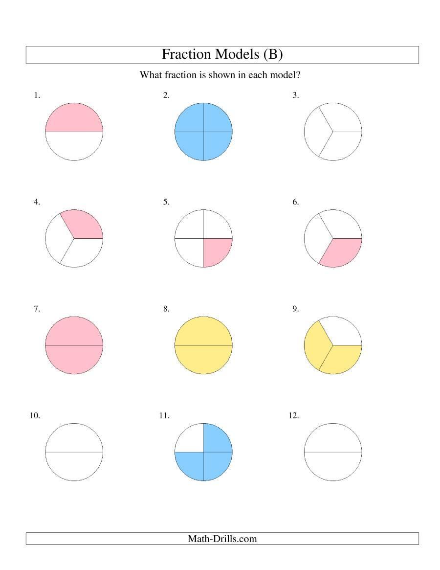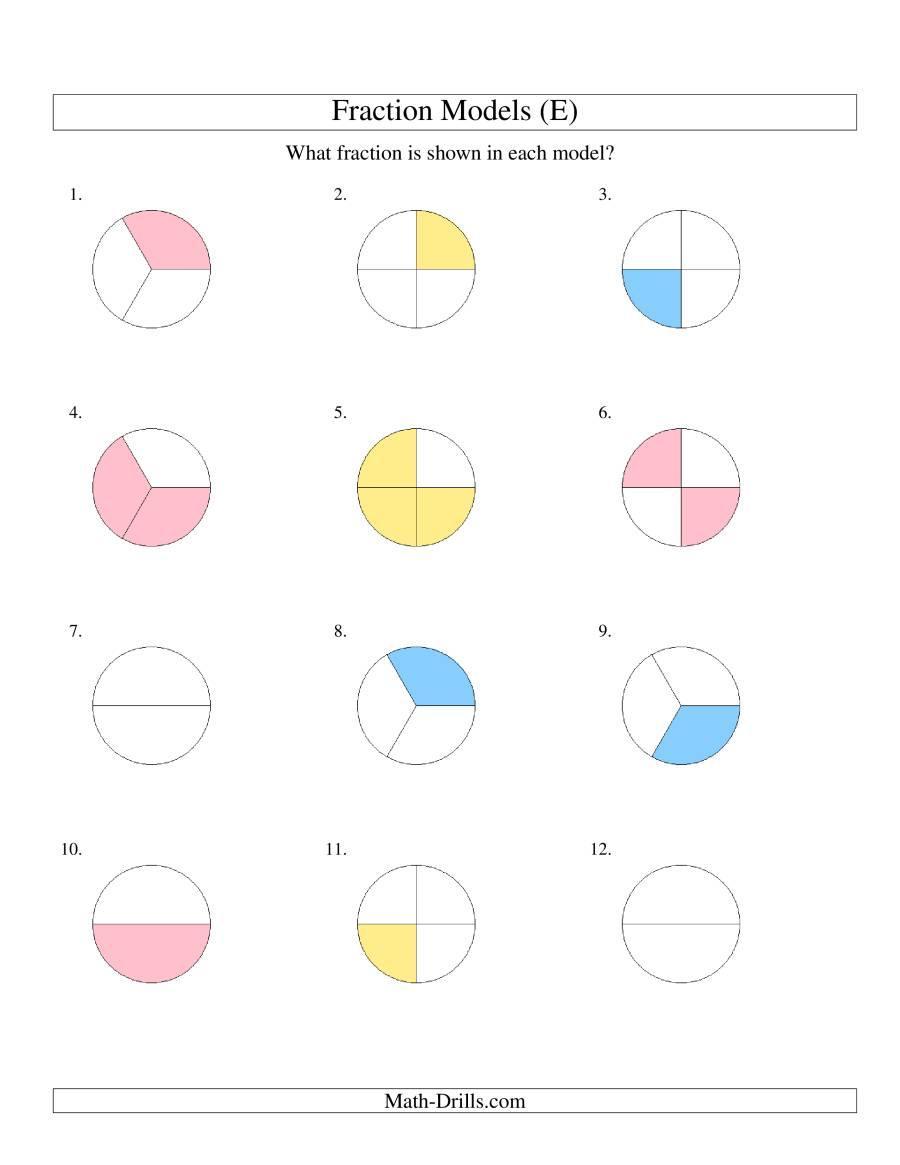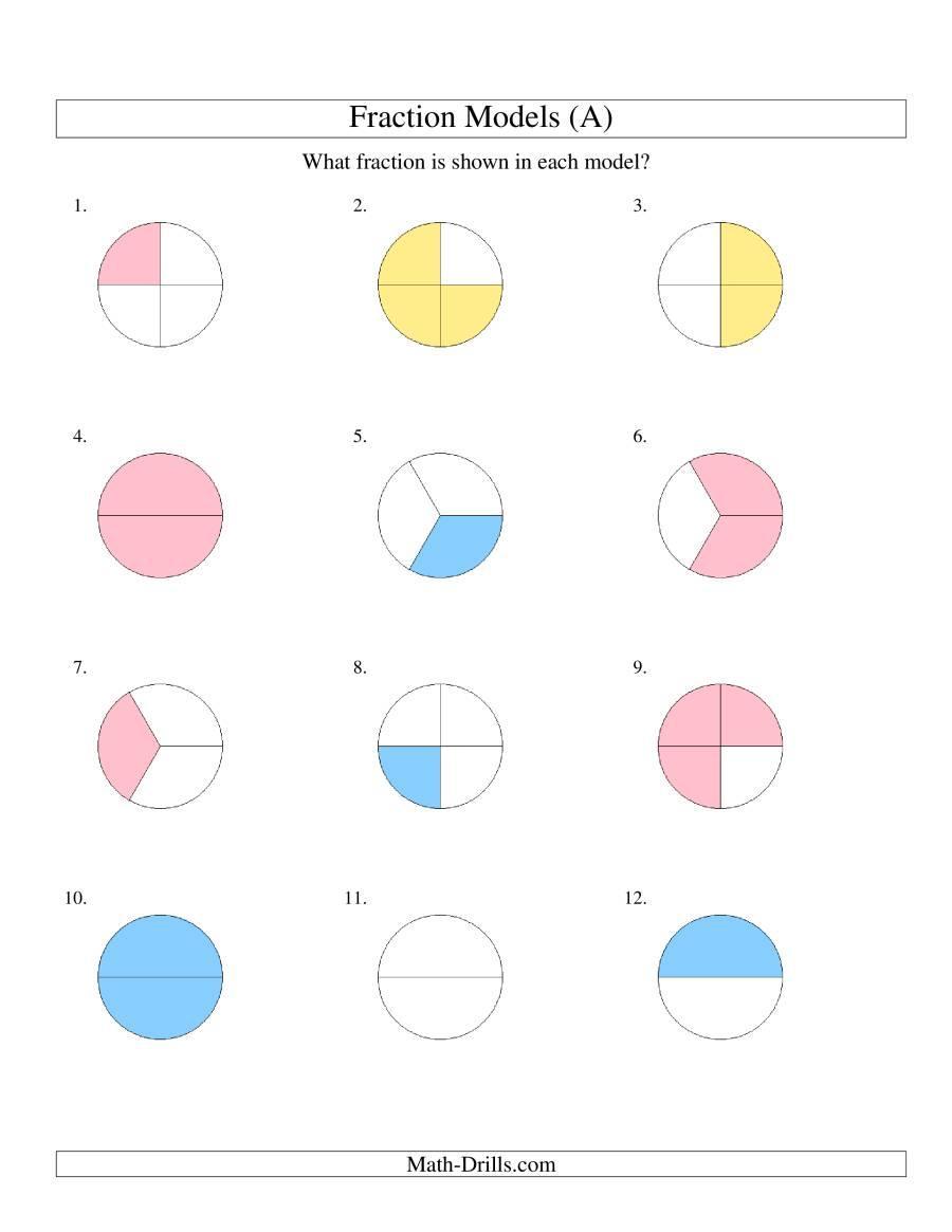 You are only required to do 5 problems. However, If you would like to, you can do the entire page. Fractions- Identify if it is 1/2, 2/4 etc. answer for Fraction Model A Example:1/4