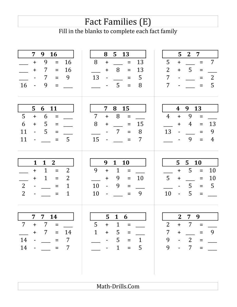 Fact Family Addition and Subtraction Lesson E You are only required to do 5 problems. However, If you would like to, you can do the entire page.