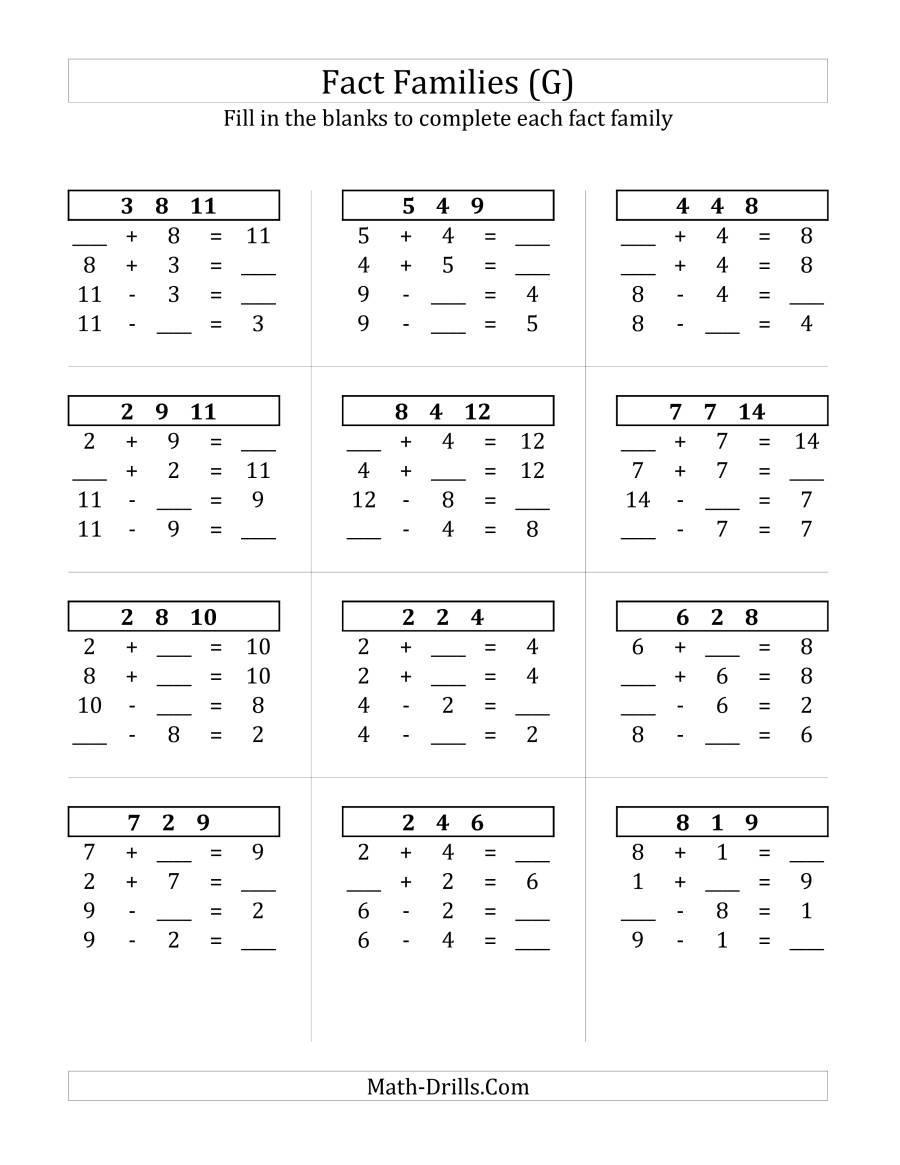 Fact Family Addition and Subtraction Lesson G You are only required to do 5 problems. However, If you would like to, you can do the entire page.