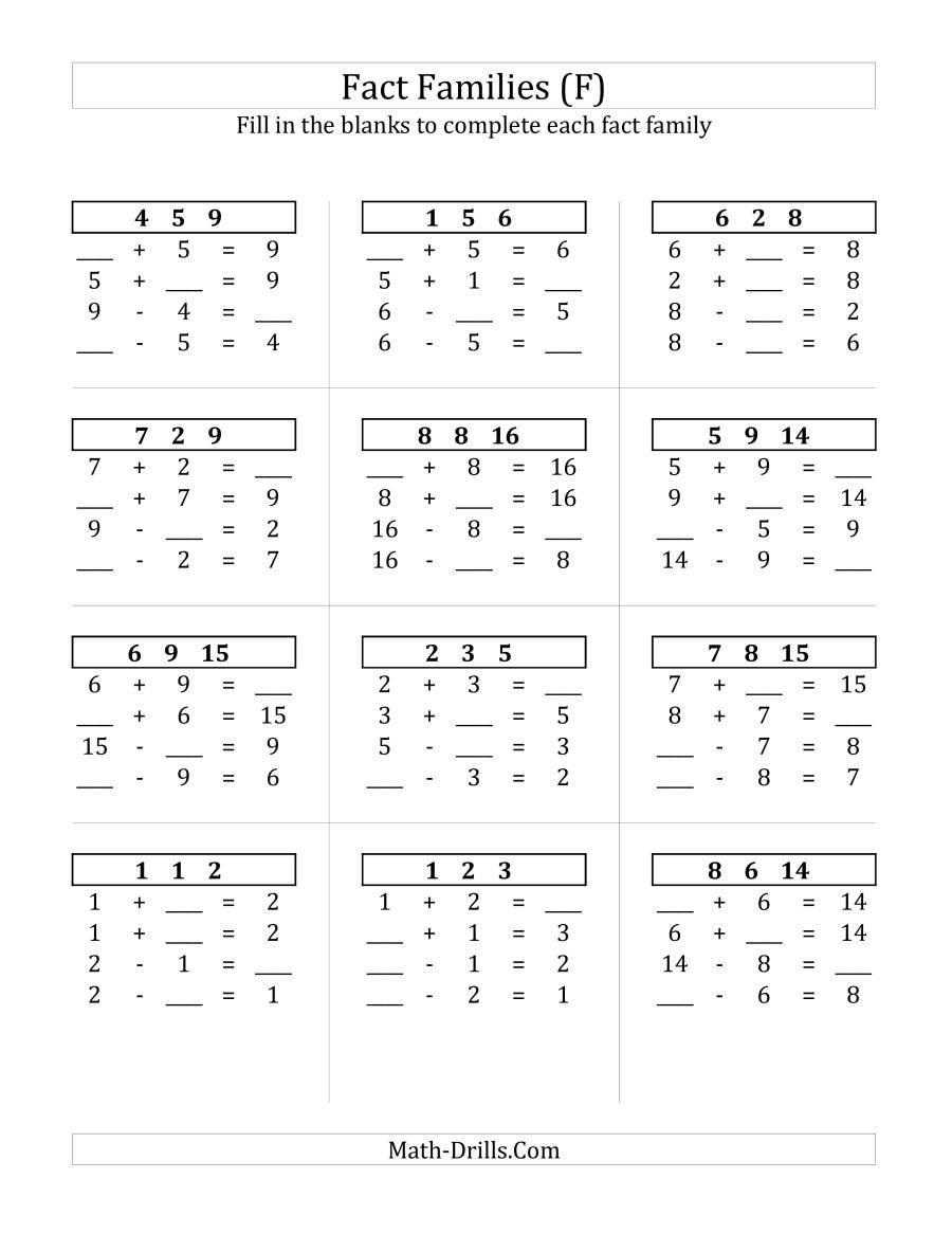 Fact Family Addition and Subtraction Lesson F You are only required to do 5 problems. However, If you would like to, you can do the entire page.