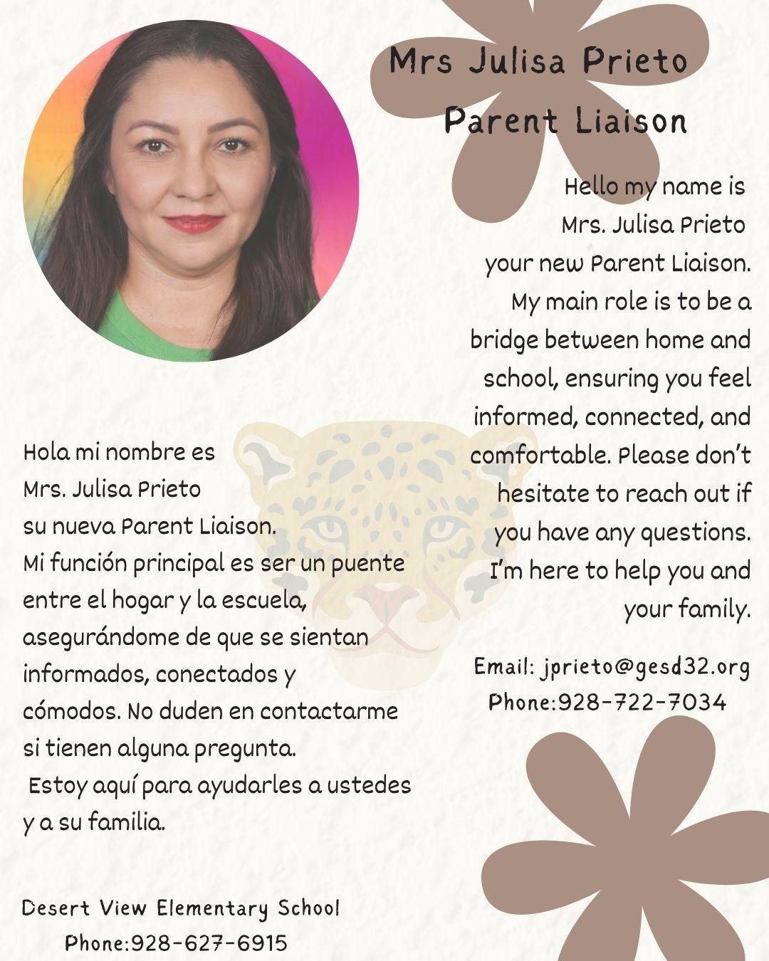 Please give a big hello to our new Parent Liaison, Julisa Prieto!